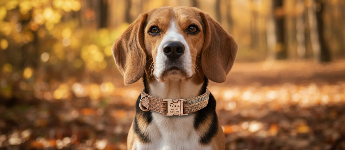 Fino – Collare per cani in nylon personalizzato con incisione | Nome & numero di telefono | Robusto, comodo e individuale