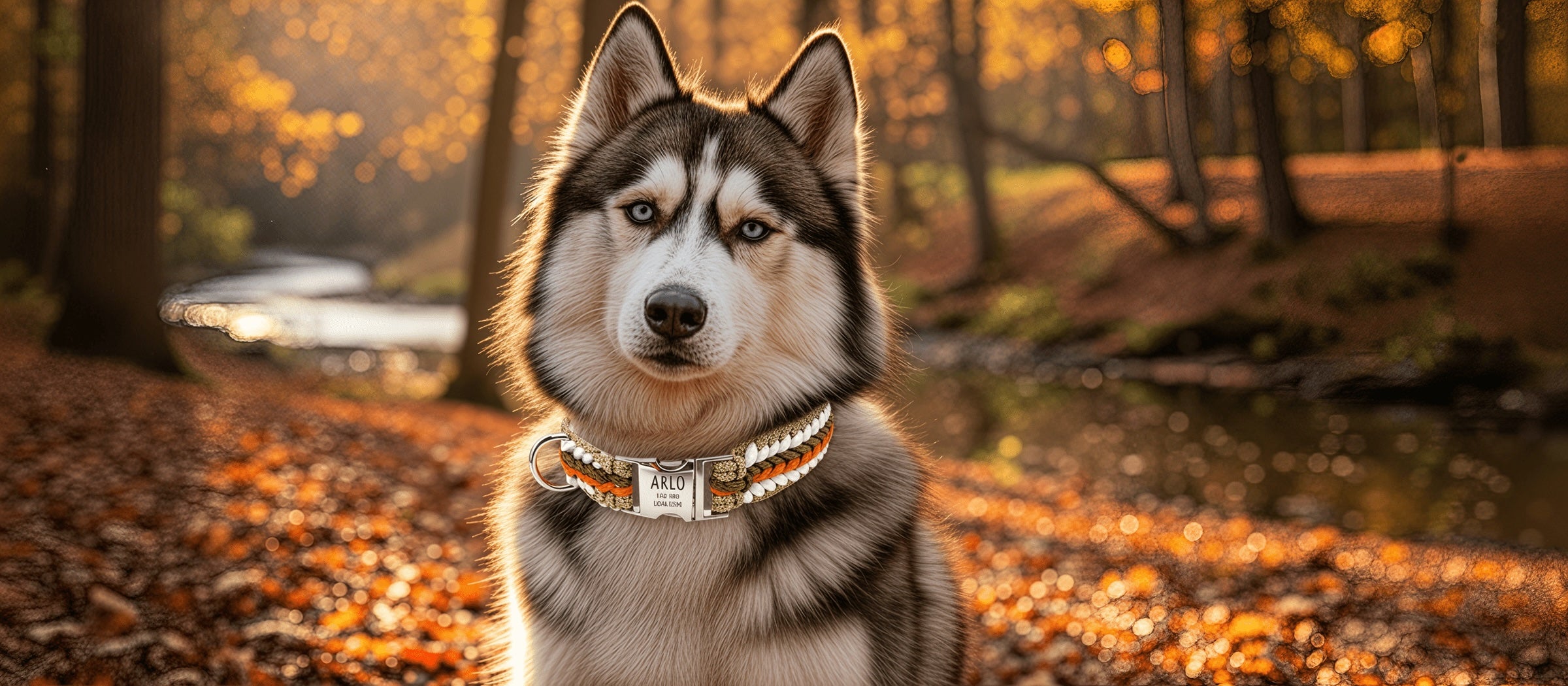 Arlo - Collare per cani in paracord fatto a mano con incisione | Arancione-Marrone-Bianco-Beige